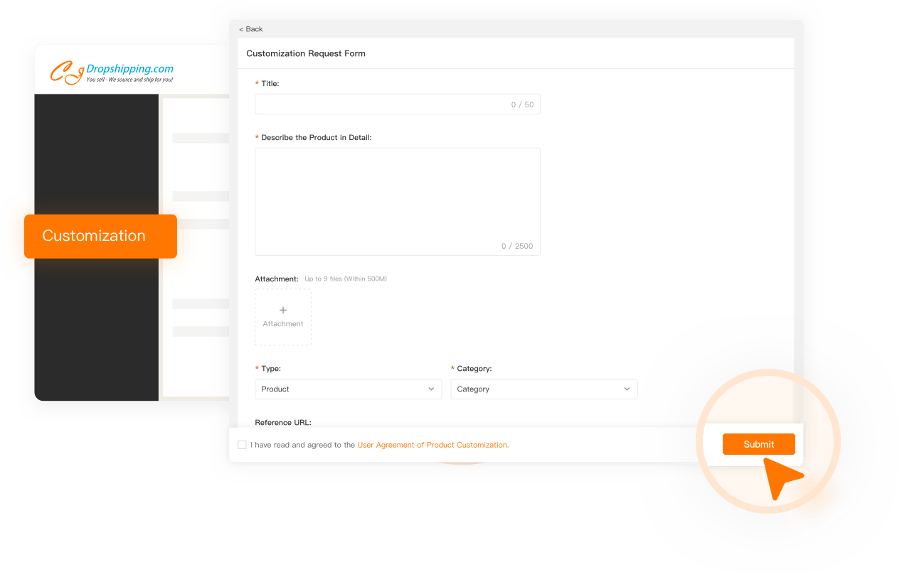 CJ provides quite a lot of products which can be customized. You can create and design any products you want.